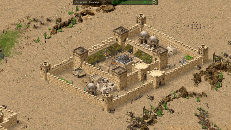 Richard the Lionheart builds simple square-shaped castles with thick walls, usually having only one Gatehouse. He erects Square Towers on all corners of his enclosure, hosting Ballistae and Mangonels in them, occasionally with Archers and Oil Pot Engineers. Sometimes this castle will be augmented with an outer wall with a few small towers on the corners. The inside of the castle houses numerous weapons workshops, as well as Good Things are built to boost combat morale. Chapels and Hovels are also sporadically built inside and outside the fort. The Keep is usually seen swarming with heavy armor; Pikemen and Archers in small mixed squads are also seen patrolling the outer buildings.
