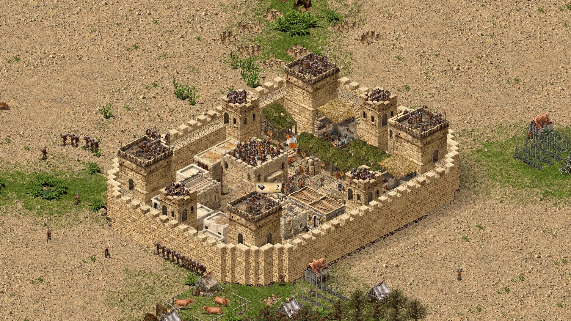 Bullseye's farms and outer buildings are patrolled by three groups of Crossbowmen, as well as one will be sent out to repel raiders in a rather lazy manner.